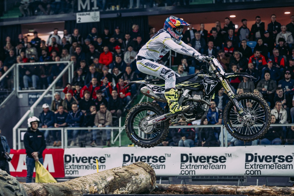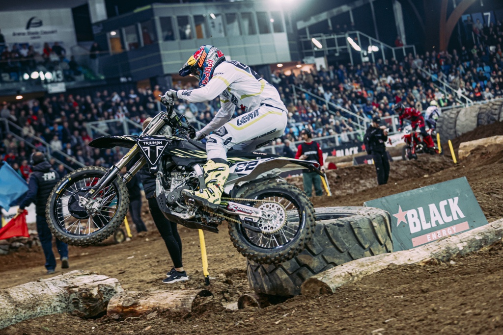Jonny’s consistent 4-2-2 race results earned him second place overall on the night, securing his seventh podium finish of the season and solidifying his position as runner-up in the championship. In what has been an outstanding debut year for Triumph in the SuperEnduro championship, Walker has topped the SuperPole twice and claimed one race win aboard his TF 250.