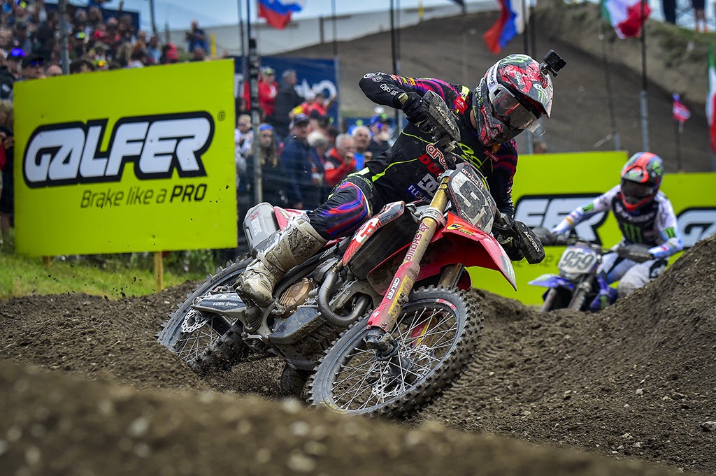 The privateer Italian took full advantage of his local knowledge to hold the likes of Gajser and Gifting behind him early on, and the Slovenian snuck past the Swede for third halfway around the first full lap, before he nearly crashed on a small jump. Distracted by Gajser’s misstep, Gifting was unfortunate to get the jump completely wrong and crash hard in his own right. Slammed by his own motorcycle, he was unable to restart and is sadly unlikely to line up tomorrow.