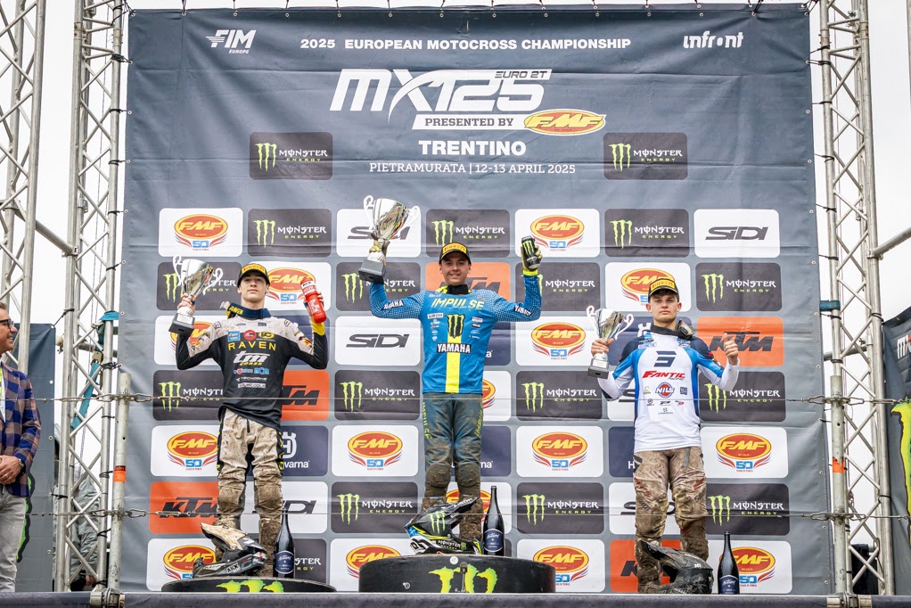 PIETRAMURATA (Trentino) 13 April 2025 – The iconic hard-pack hills of Pietramurata played host to the round of Trentino in the European Championship series, as both the EMX250 and EMX125 Presented by FMF Racing classes delivered edge-of-your-seat action across the weekend. With championship battles tightening and new stars emerging, the MXGP of Trentino weekend proved pivotal for riders chasing silverware in Europe’s most competitive developmental ranks.