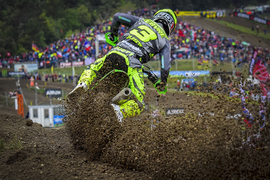 Adamo and Everts gave chase in third and fourth, while De Wolf had to battle from outside the top ten initially. After five minutes he had worked past the JM Racing Honda of David Braceras for fifth, while Red Bull KTM Factory Racing teammates Sacha Coenen and Simon Laengenfelder were battling from further back still.
