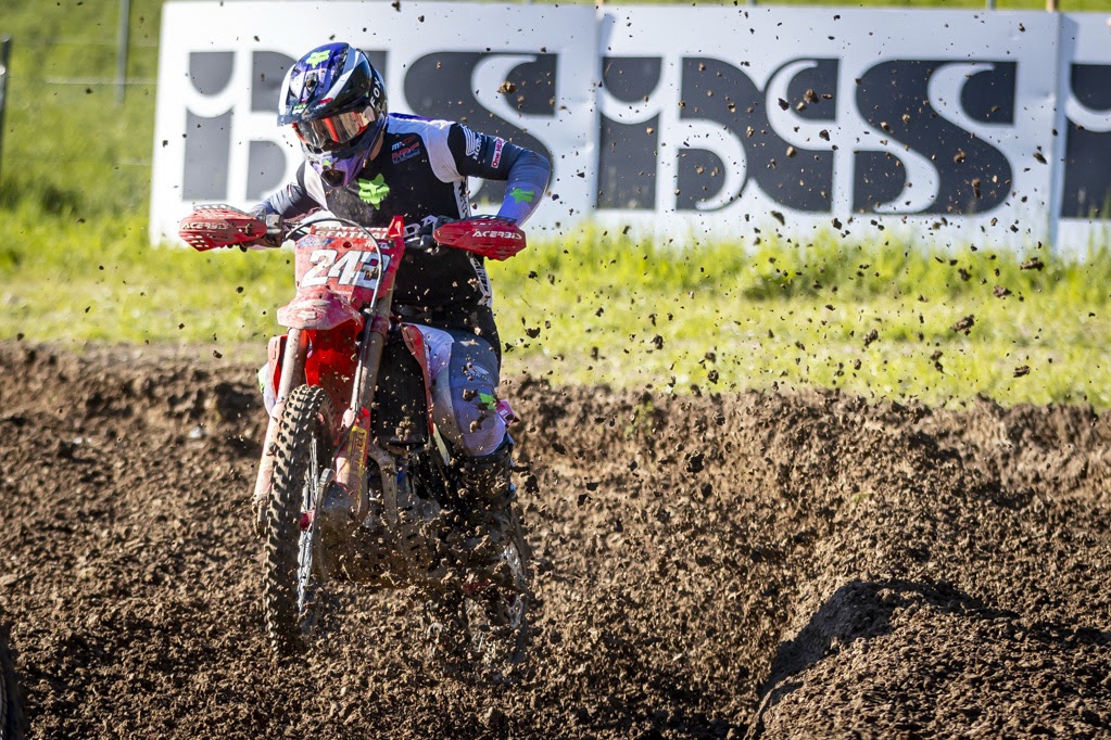 It all happened on lap five as Adamo and Laengenfelder got past Valk, with Everts and the Gabriel SS24 KTM Factory Juniors new recruit Oriol Oliver giving chase. De Wolf’s pressure finally told on Lata and the reigning Champ took over at the front, never to be caught from there. Adamo just got too aggressive with Lata and fell over his countryman’s rear wheel in a tight right hander!