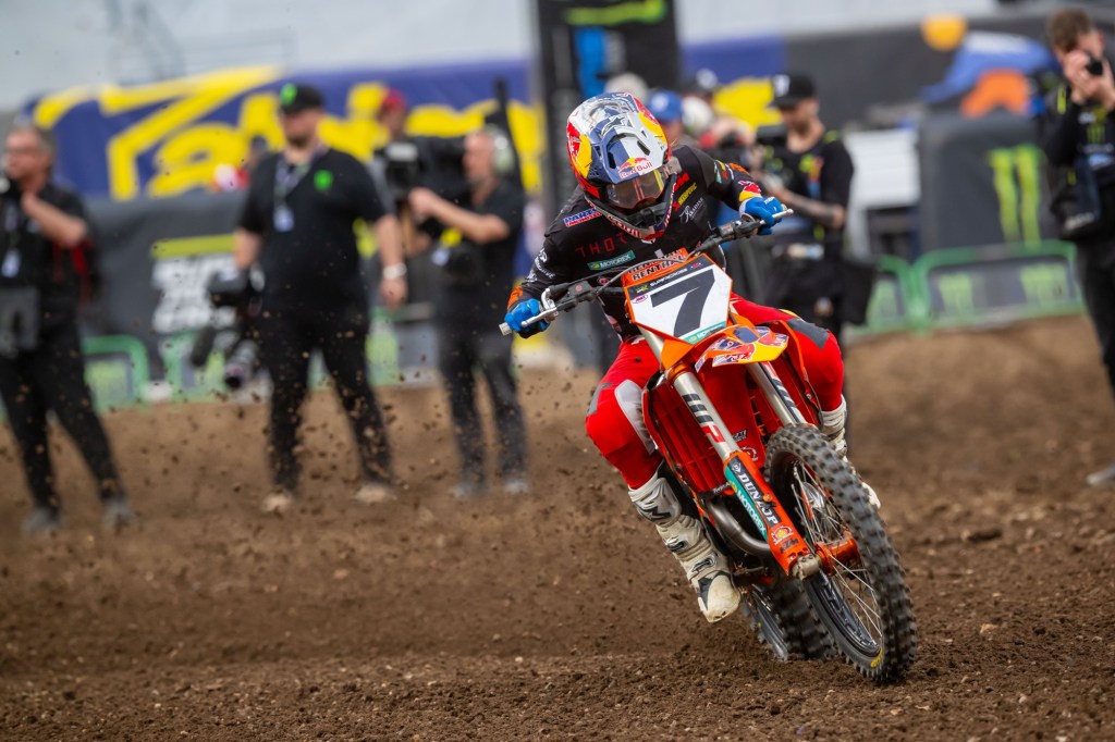 “I felt good all day. The two whoop sections helped me out a lot. I really feel like I made a lot of time up there. The KTM group has the bike working great. I had such a good flow that moto, and it really just felt like it was effortless for me, which is what we want. [We’ll just try to] keep that going, but I’m stoked. Fifth win of the season, so just try to keep truckin’ and focus week in/week out and see where we get. Overall, [I’m] having fun. I got a great start and made it happen.” – Chase Sexton, when asked what a dominating win does for a rider’s confidence.