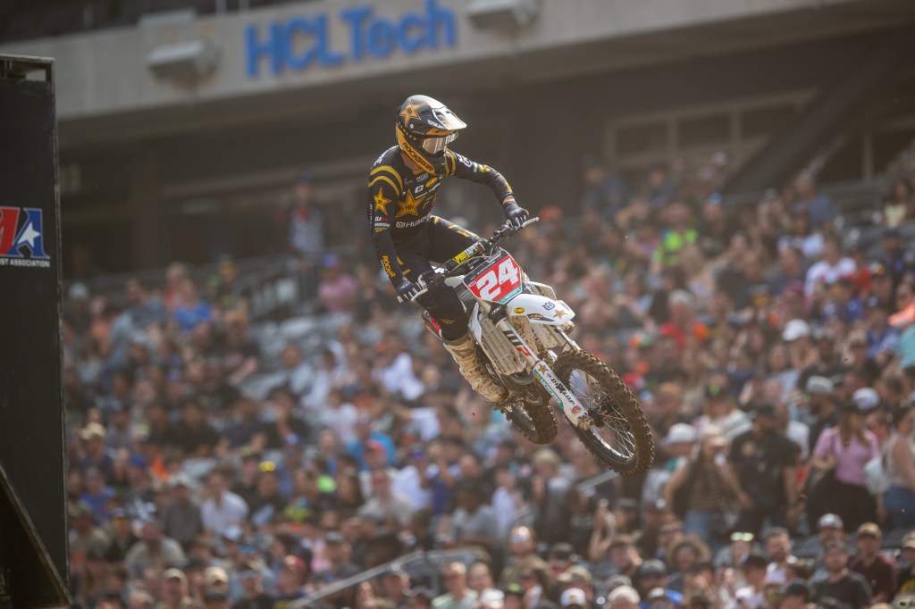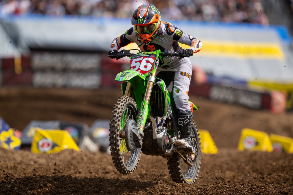 In the Eastern Divisional 250SX Class, Seth Hammaker became the first rider to give Kawasaki a win in the 250SX Class in East Rutherford. Rockstar Energy Husqvarna Factory Racing’s RJ Hampshire kept the racing close but never reached striking distance of the rider he shared the points lead with going into the New Jersey round. Defending champion Red Bull KTM Factory Racing’s Tom Vialle earned the final step on the podium, bouncing back from two tough finishes in the previous rounds that saw him surrender the points lead.