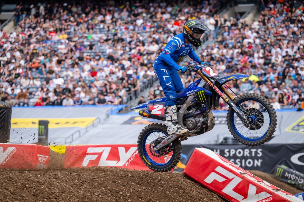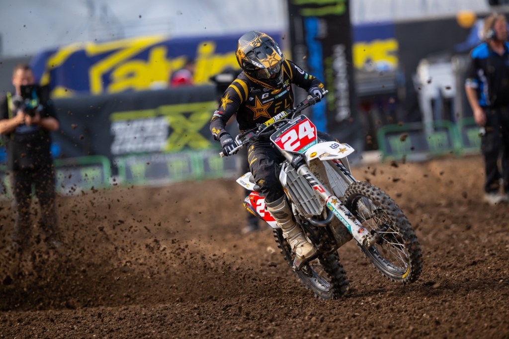 “It’s tough, he was on it and he was killing me in those two sets of whoops. It’s something we’ve tried to fix this year, but these are gnarly. They have ruts all the way down them. I’m still pretty mind blown how he was able to do it so good. You’re trying to just stay with him and he rode awesome. He was inching away, and those whoops were really killing me. I got a little tight, and that was all she wrote. With that being said, he did what he needed to do, he rode a great race, he kicked my butt, and I didn’t put my money where my mouth was. We’ll go back, re-group. Definitely bummed on that finish, we wanted more fight tonight, but it is what it is and we’ll come back swinging… and try come win next week.” – Cooper Webb