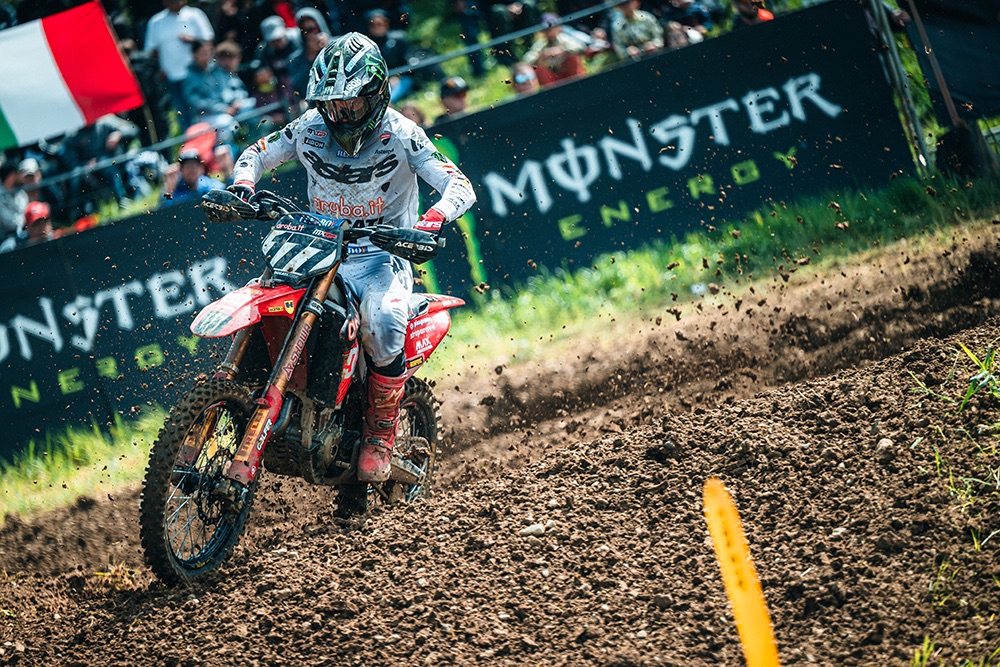 Even though the moto got off to a rough start for the Ducati riders, they crucially didn’t lose heart. Regaining their rhythm, they began climbing through the field lap after lap. Jeremy fought his way up to fourth – just shy of a podium finish – but, driven by the roar of his home crowd and a sensational final lap, he surged into third. With that heroic charge, he delivered the first-ever podium for the Borgo Panigale company in just their sixth Grand Prix appearance in motocross history.