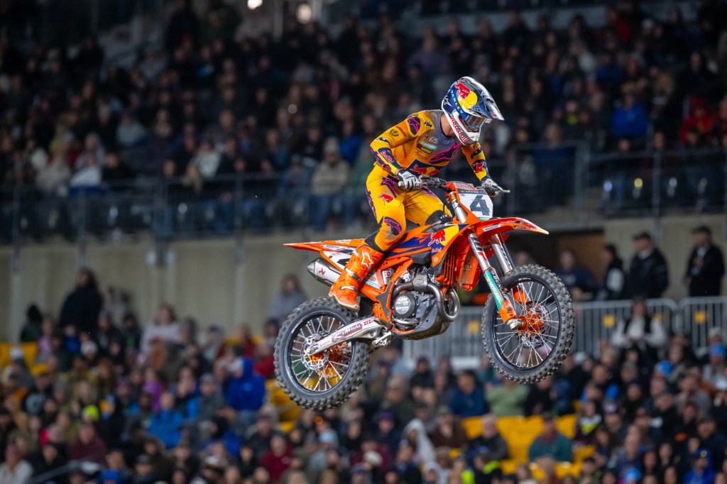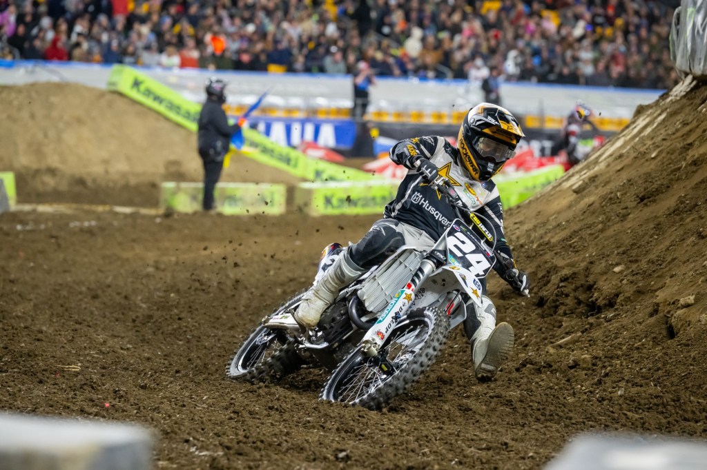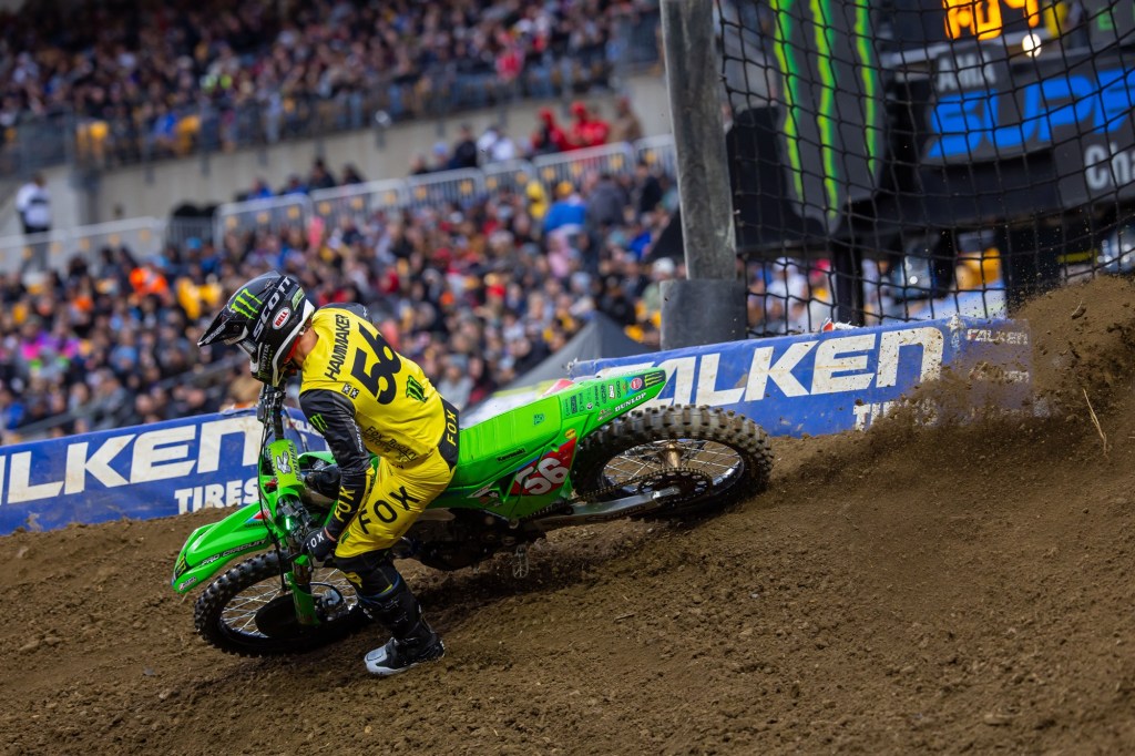“It was just hard. I knew I could skim [the whoops] for a little bit but I was using a lot of energy doing that. They’re really far apart, so just wasn’t getting too much drive and Cooper wasn’t losing too much time jumping. So, I went to the jump line, made one mistake and went off the track, but other than that I felt like I was pretty solid. Coop rode a really good race. I pressured him the whole time and he didn’t make a mistake. Every time I tried to push a little bit more, I’d make a mistake. It was a tough track. You couldn’t really push too hard and there wasn’t a whole lot of separation. He rode a great race and [I’ll] come back next weekend and try to do better, but it was a tough pill to swallow losing that race. But it is what it is, and we have two more.” – Chase Sexton, when asked about his decision to switch from blitzing the whoops to jumping through the whoops.