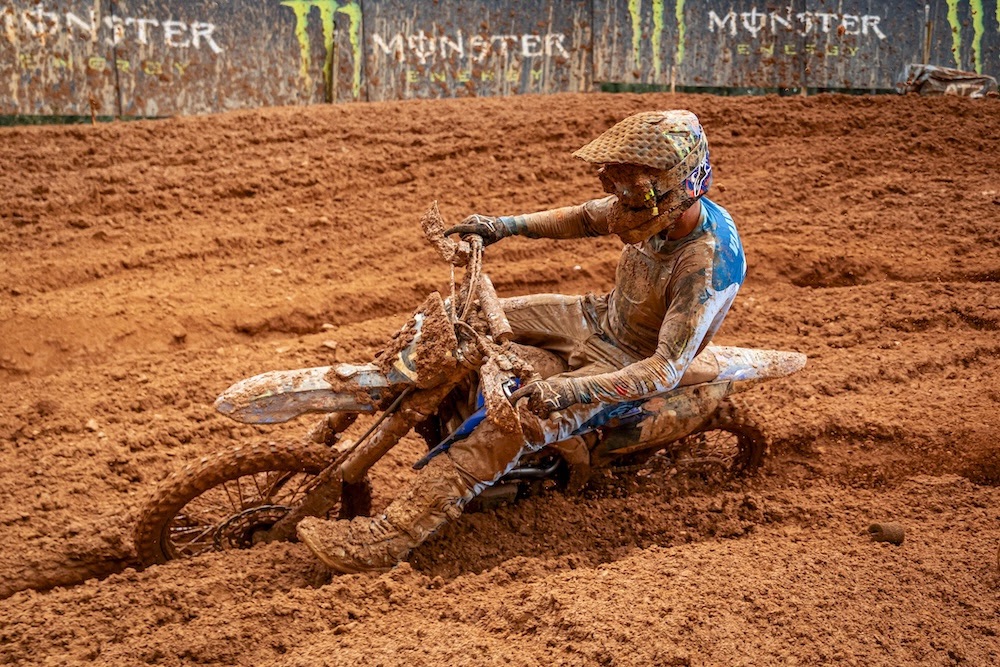 Lucas Coenen: « The track was really brutal today. I messed up the start a bit and Romain (Febvre) closed me off, but I kept the pressure and he made a mistake and I was able to take over and control the race from there. The ruts are super harsh which which make it hard on the jumps. You can crash jump pretty easily with the water when you land, and I had a close call on the finish. But I stayed calm, kept it smooth, and overall it was a good day. Hopefully it’ll be a little less rough tomorrow—let’s see how it goes. »