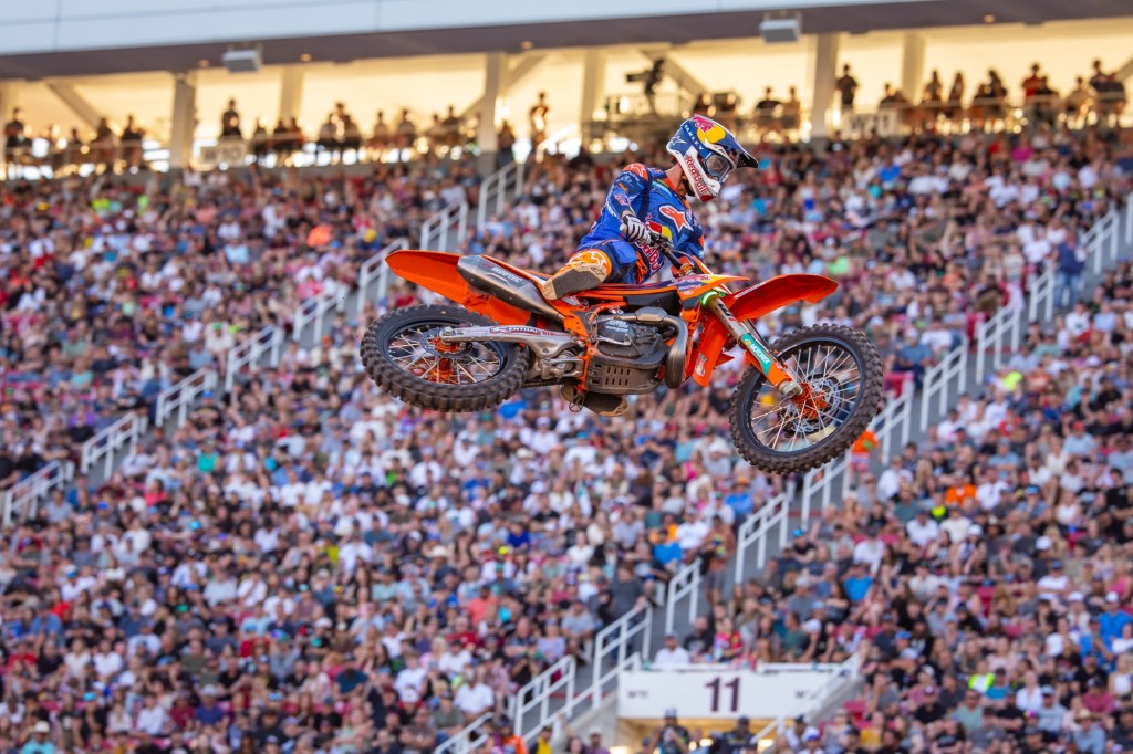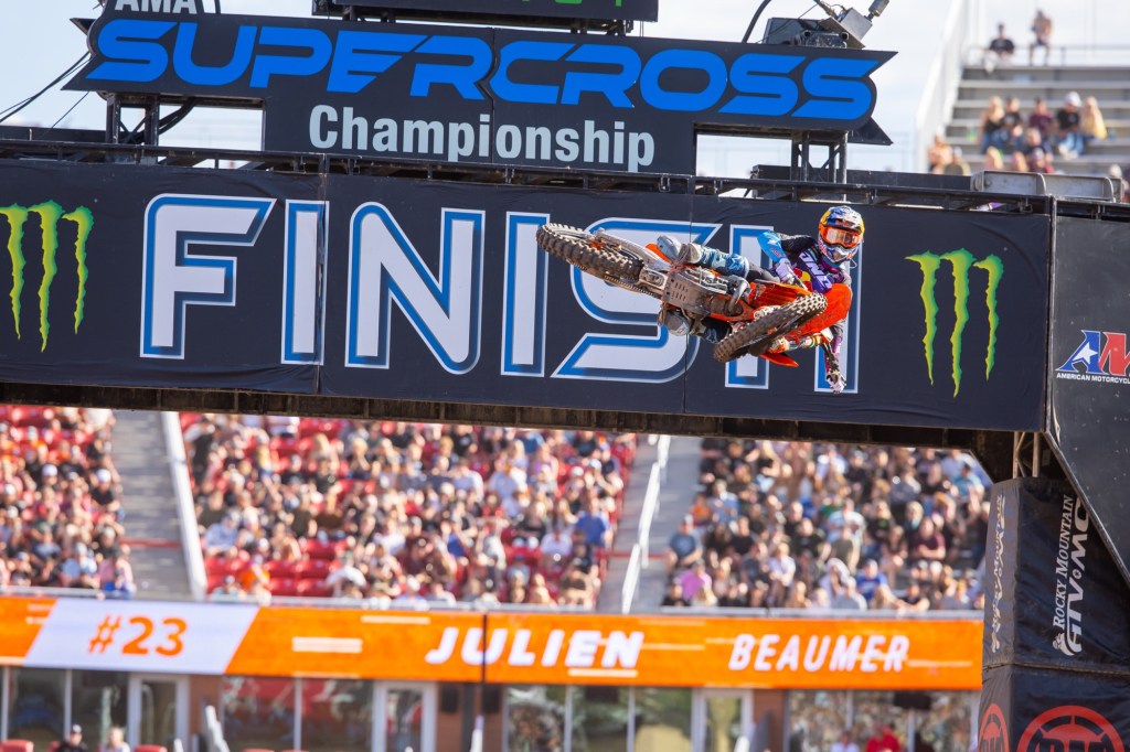“A little bit too late, obviously. Cooper had an awesome season. You can’t take anything away from him. He’s such a good competitor. I knew tonight was going to be a long shot. Nine points [to make up], especially going up against a guy like him, it’s nearly impossible. I did the best I could, rode really well at the end of the season; obviously missed that one race win that I needed. But you know what, we rode really well, and can’t thank my team enough [and] the fans. And we’ll be back for outdoors and SMX. We’ve got two more championships to go after, so [we’ll] just try and build for next year, try and start off like this, and we’ll be in a good spot.” – Chase Sexton, when asked about his impressive speed in the final rounds of the season.