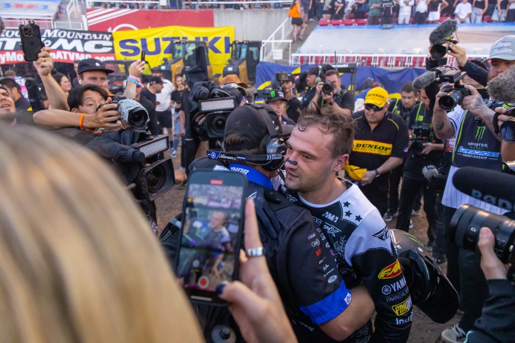 “That was wild. I just heard bikes revving behind me, [I was] like, ‘Oh my God, they’re going at it!” I’d seen Seth for a second and then he was gone, and I was like, ‘Oh, no, they got into it.’ But congrats to Tom on the Championship, that’s super cool. And dude, the crowd was going wild. That was dope. Thank you to everyone, thank you to my fans for supporting me and my whole Monster Energy Star Racing Yamaha team, love you guys.” – Haiden Deegan