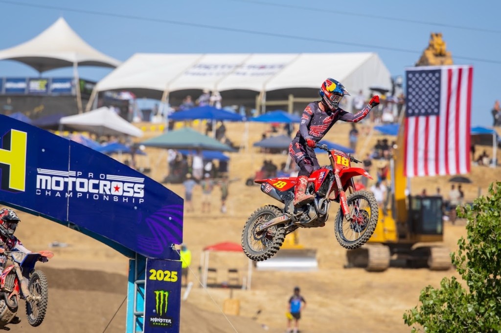 RANCHO CORDOVA, Calif. (May 31, 2025) – The story of the day for the second race of the Pro Motocross Championship, sanctioned by AMA Pro Racing, was the weather, as a weekend heatwave pushed temperatures into the triple digits for Round 19 of the SMX World Championship and the Michael’s Reno Powersports Hangtown Motocross Classic Presented by Seven MX. While racers were tested even further across each pair of motos in the 450 Class and 250 Class, in the end the respective points leaders rose to the occasion to take firm hold of the early championship battles. In the 450 Class, Team Honda HRC Progressive’s Jett Lawrence made a statement in the final moto to prevail with the win, while Monster Energy Yamaha Star Racing’s Haiden Deegan remained unbeaten four motos into his 250 Class title defense.