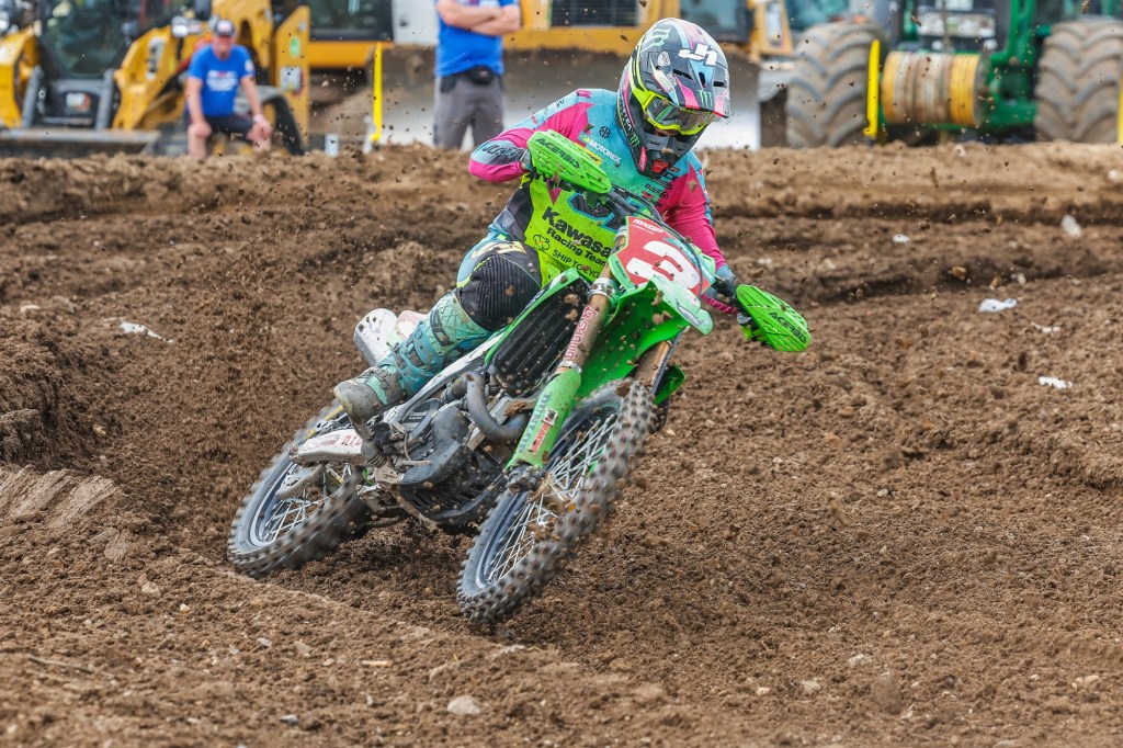 Adamo’s fifth Sunday race win of the season halved the gap in the points to just five behind Laengenfelder, setting things up for a showdown as the heavens opened before the start of the second MX2 race!
