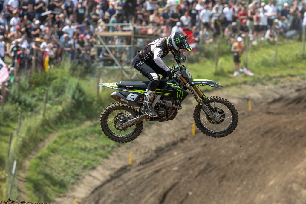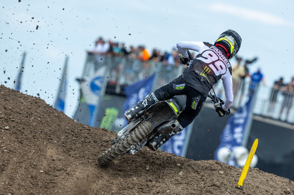 Monster Energy Triumph Factory Racing’s Guillem Farres has placed a career-best second overall at the MXGP of Germany. After racing to ninth in moto one, the Spanish star claimed a maiden victory in race two to secure his place on the overall podium. Camden McLellan also delivered a strong result, finishing seventh.