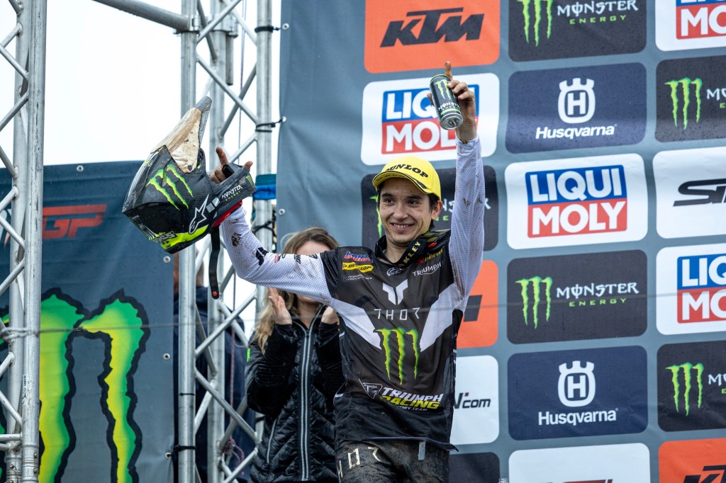 Farres was able to hold on to win his first ever race in MX2, and that makes him the tenth rider to take a chequered flag in the class this season! It gives him his best ever overall finish of second overall, matching the best yet for the second-year Monster Energy Triumph team!