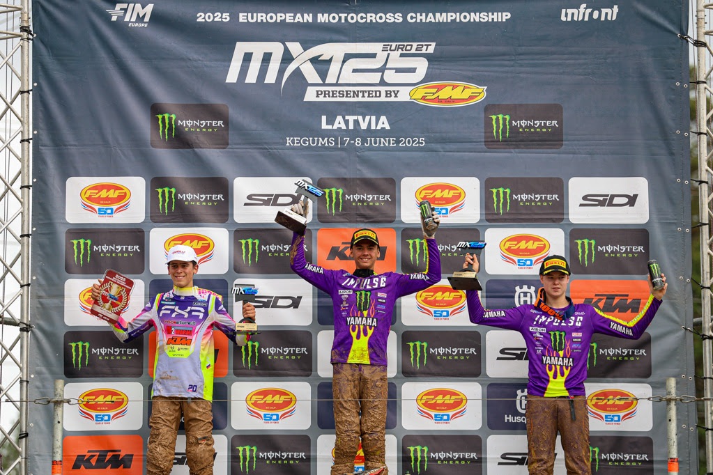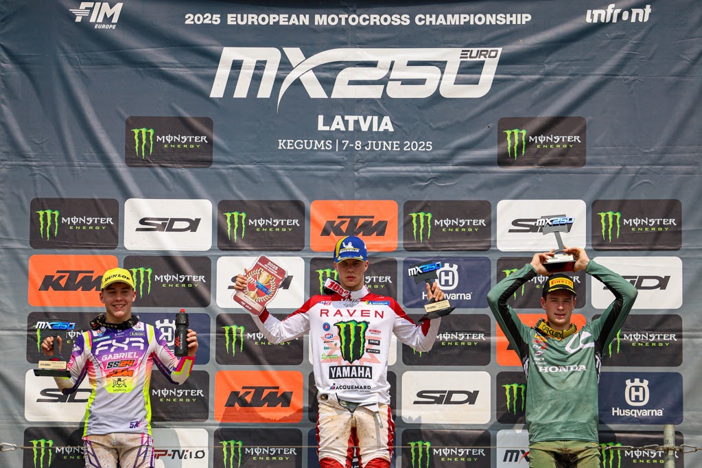KEGUMS (Latvia) 8 June 2025 – The EMX250 round 8 in Latvia, Kegums delivered a home hero story that had the Latvian crowd on their feet all weekend. Janis Reisulis from Team VHR VRT Yamaha Official was unstoppable on home soil, mastering the sandy and technical terrain to claim a flawless 1-1 result and dominate both races in front of an adoring crowd. Despite battling sickness, the Yamaha rider pushed through to deliver one of the most convincing double wins of the season, grasping even more his claws on the red plate.,