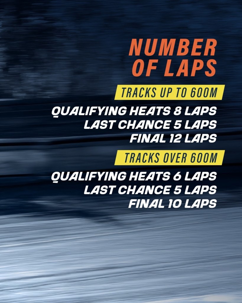 At each round riders will compete over a programme of twelve Heats with the top ten progressing directly to the Grand Final. Riders placed eleventh to twentieth will then take part in a Last Chance Heat with the top two finishers also earning a place in the Grand Final where, in achange for this year, on top of the regular championship points available an additional point will be awarded to the fastest rider.