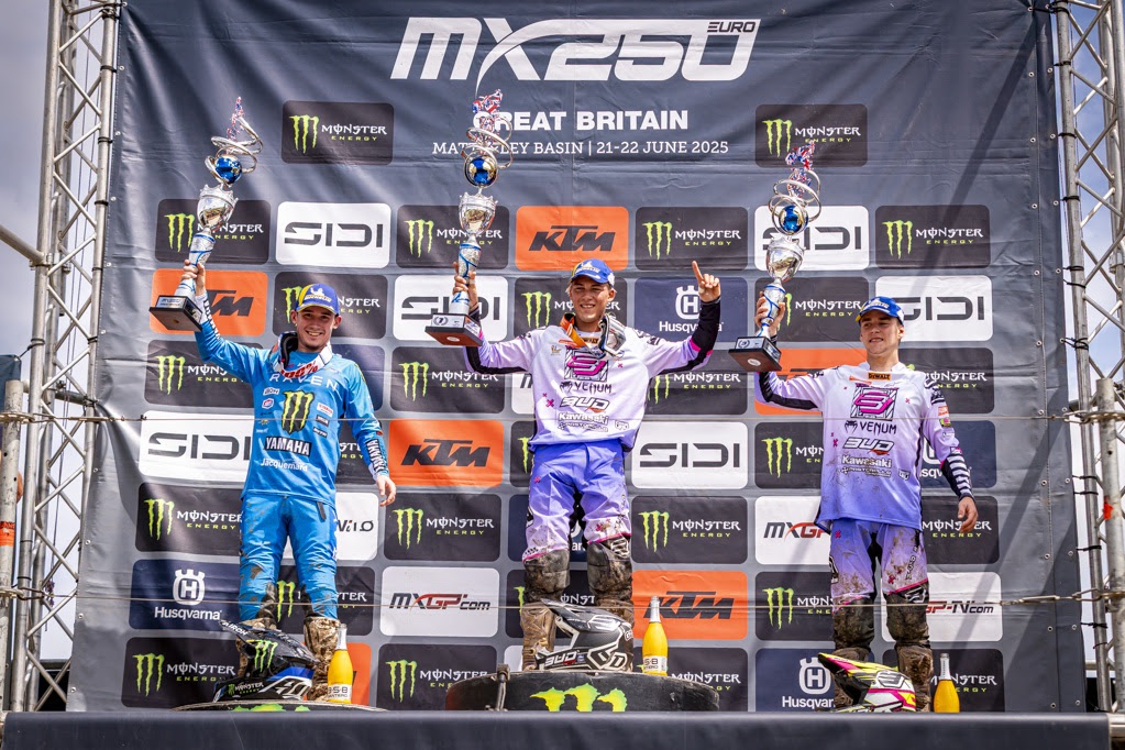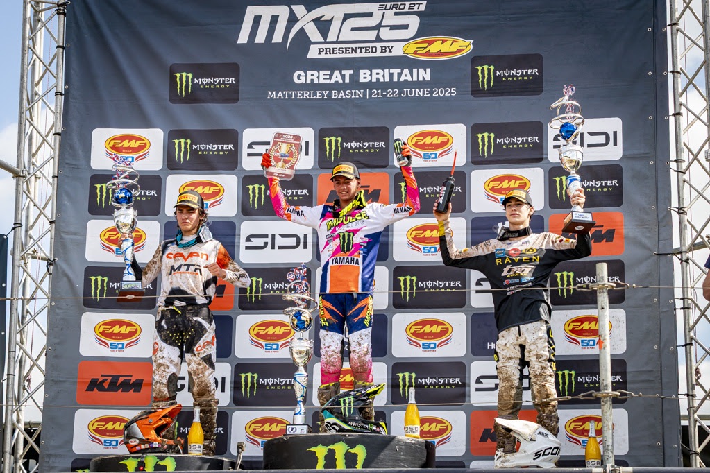 MATTERLEY BASIN (Great Britain) 22nd June 2025 – Matterley Basin hosted a pivotal weekend in the European Motocross Championships, where both theEMX125 Presented by FMF Racing and EMX250 classes delivered standout performances and major shifts in the title chases during the British round. With high heat on Saturday and wind on Sunday adding another layer of difficulty to the already demanding British circuit, the pressure was on, and the riders rose to the occasion.