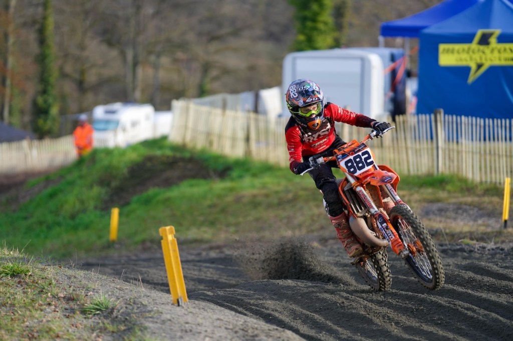 Champion de France Minivert chez les minimes l’an passé, neuvième chez les espoirs du 24MX Tour avec une première victoire à Villars-sous-Écot, Enzo Herzogenrath (2/1) s’est imposé avec la manière sur l’ouverture du championnat 2025. Auteur de deux très bons départs, le pilote KTM TMX Compétition a mis de l’intensité dans les deux manches. Membre de l’équipe de France espoir, soutenu par la FFM, le jeune français abordera l’épreuve de Gueugnon avec la plaque rouge. En seconde position, on retrouve Louis Morette (1/3). Vainqueur du premier débat au guidon de son HVA, LM200 est bien parti ensuite avant de chuter et de revenir chercher une belle P3. La troisième marche du podium est occupé par Tim Lopes (4/2). Reparti treizième après une chute en première manche, le nouveau pilote Bud Racing Academy est bien revenu dans le top cinq avant de s’offrir un superbe seconde place. Attendu au tournant comme les principaux favoris, il a répondu présent. Pour Rafael Mennillo (3/5), quatrième du jour, c’est le scénario inverse qui s’est produit. L’officiel Tech32 et pilote de l’EDF termine sur le podium pour débuter avant de manquer son départ, chuter et revenir limiter les dégâts avec un top cinq. Régulier, Kenzo Jaspers (6/6) complète le top cinq. Rendez-vous fin mars en Bourgogne à Gueugnon sur les terres du Président de la Commission de Motocross Jean-Pierre Forest pour le round #2 du championnat espoir.