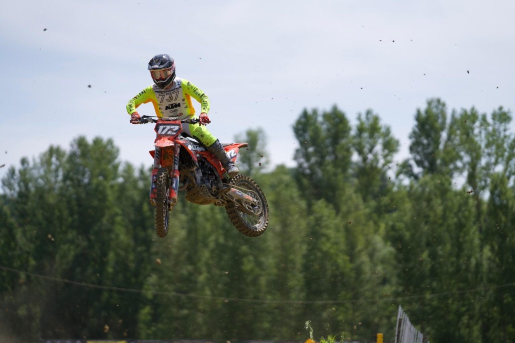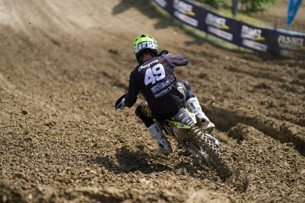 À Gueugnon, également sous le soleil, sur un circuit au top, la première manche espoirs a permis au cinq pilotes de l’équipe de France espoir de faire le spectacle. Sous les yeux de leur entraîneur national Freddy Blanc, c’est Enzo Herzogenrath, déjà vainqueur à Lacapelle, qui a tenu le choc jusqu’à l’arrivée en devançant Louis Morette de quatre secondes et Rafael Mennillo de cinq. Tim Lopes et Loan Torro terminent dans cet ordre derrière leurs jeunes collègues. Le second débat tourne cette fois-ci à l’avantage de Louis Morette qui devance Enzo Herzogenrath, Tim Lopes, Valentin Berjaud et Loan Torro. P3 en première manche, Mennillo termine neuvième. Au général, Morette (2/1) gagne la journée devant Herzogenrath (1/2) et Lopes (4/3). Chez les juniors, belle surprise en première puisque c’est le pilote KTM Loris Bret qui s’offre sa première victoire de manche dans la catégorie. Le sudiste devance de peu Yannis Lopez et Sleny Goyer qui monte sur la dernière marche du podium. Matéo Bernard et Mari Ruiz sont P4 et P5. En seconde manche, le scénario s’inverse et cette fois-ci, c’est Goyer qui va au bout en devançant Armandie, Bret et Lopez. Le jeune normand s’impose au général au profit d’une meilleure seconde manche, Bret signe son premier podium et Yannis Lopez termine troisième.