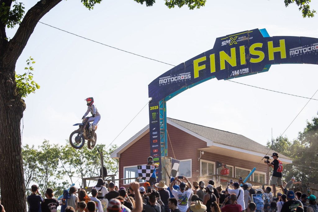 SOUTHWICK, Mass. (June 28, 2025) – Following its first break in action of the 2025 season, the Pro Motocross Championship, sanctioned by AMA Pro Racing, returned to the track for Race 5 of the summer campaign and Round 22 of the SMX World Championship regular season. A morning of cloud cover and mist gave way to sunny skies for the motos at the Crestview Construction Southwick National, where the sand track of The Wick 338 is legendary for challenging racers both physically and mentally. While the track pushed many riders to the limit, the series points leaders enjoyed their most dominant performances thus far as Honda HRC Progressive’s Jett Lawrence cruised to his fifth straight victory and Monster Energy Yamaha Star Racing’s Haiden Deegan rode to an emphatic fourth win in five races.