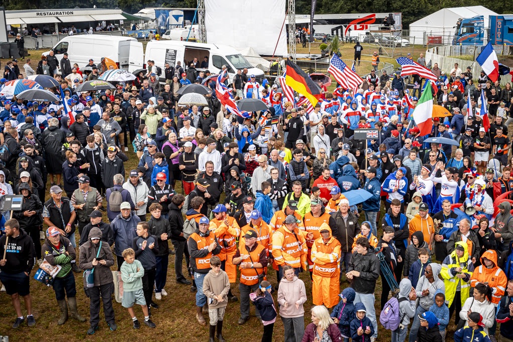Teams and riders gathered on the on the starting area with their national flags in hand, welcomed by a live orchestra that set the tone for the day. The emotional highlight came as the musicians played La Marseillaise, marking a proud moment for the host nation and completely launching the day. Before racing began, a one-minute silence was held in memory of former FIM President Francesco Zerbi, who made a lasting impact on international motocross.