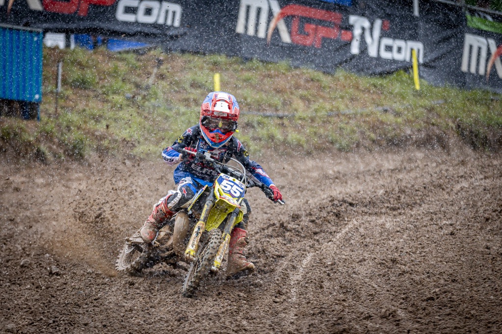ROMAGNÉ (France) 6th July 2025 – After a day of qualification on Saturday for the FIM Junior World Motocross Championships, it was time for racing today at the French circuit of Romagné, although the young riders were faced with much tougher conditions than expected as heavy rain hit the north-western venue to leave a slippery surface for all competitors to deal with!