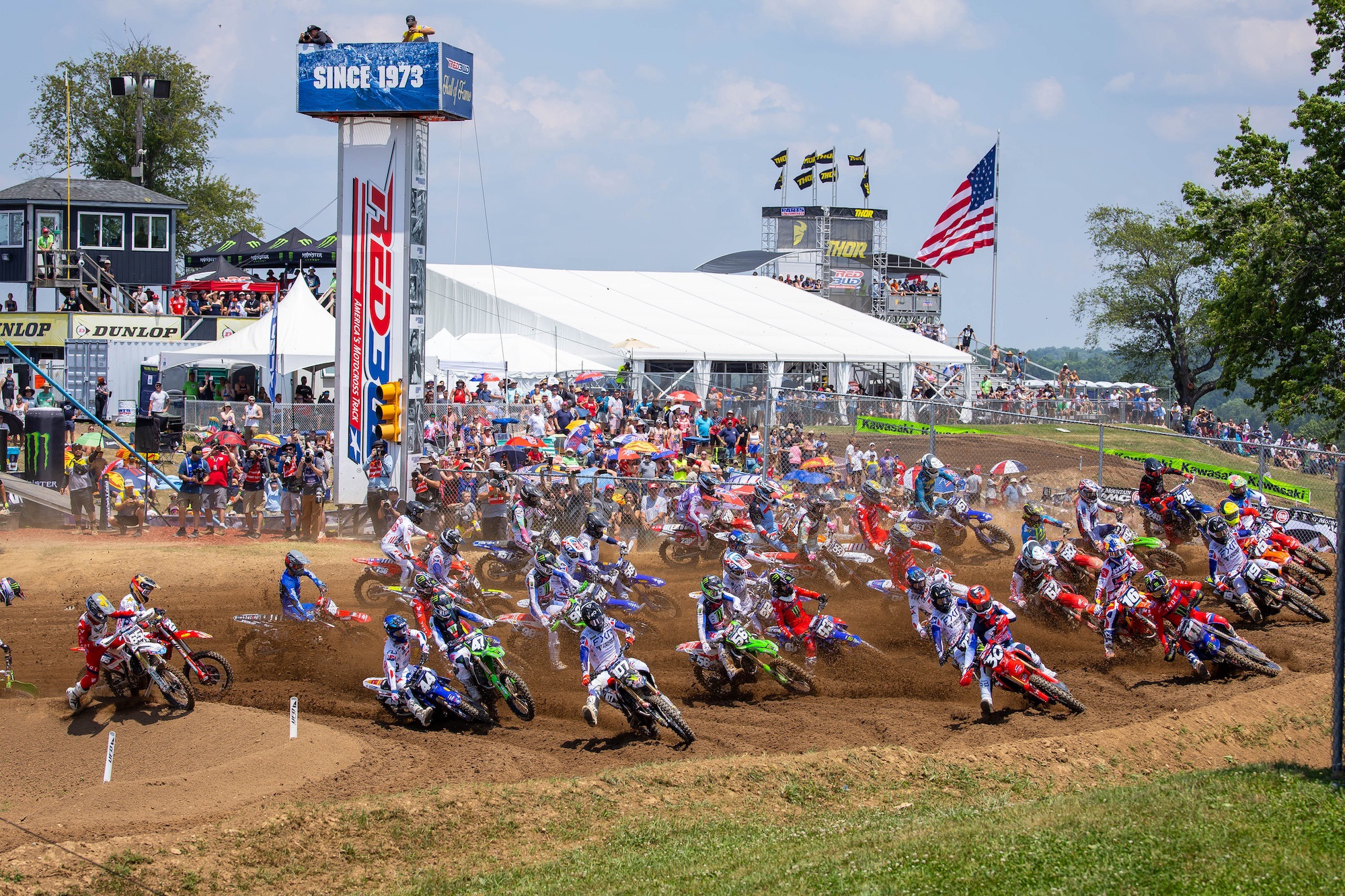 The Pro Motocross Championship sanctioned by AMA Pro Racing features the world’s fastest outdoor motocross racers, competing aboard homologated bikes from one of eight competing manufacturers on a collection of the roughest, toughest tracks on the planet. Racing takes place each Saturday afternoon, with competition divided into two classes: one for 250cc machines, and one for 450cc machines. MX Sports Pro Racing, the industry leader in off-road powersports event production, organizes the Pro Motocross Championship series.