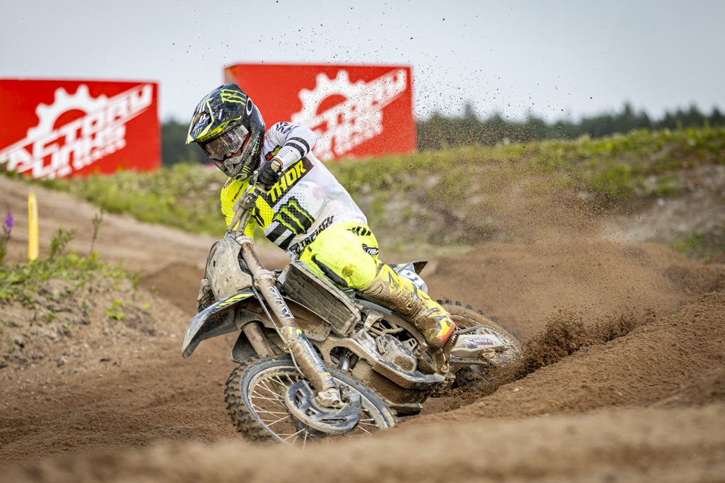 The leading riders in the practice sessions showed that it was clearly a track for the sand lovers, as Kay de Wolf finished top in the morning session ahead of Sacha Coenen, although the Red Bull KTM Factory Racing rider reversed those positions to take the first gate pick for the Qualifying Race, while Liam Everts was third behind his Nestaan Husqvarna Factory Racing teammate. Cas Valk was third and then fourth for Van Venrooy KTM Racing, while his former EMX250 rival Mathis Valinwas also in the top five for Kawasaki Racing Team MX2. Red plate holder Simon Längenfelder could only manage seventh, just ahead of fellow Red Bull KTM Factory Racing rider and main championship chaser Andrea Adamo.
