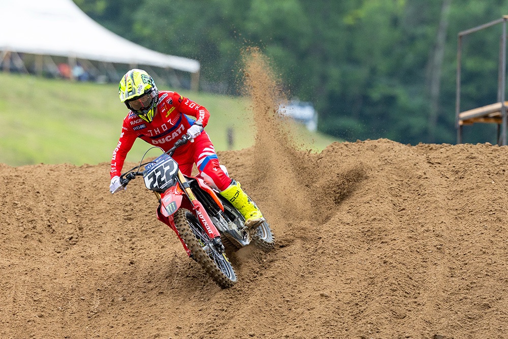 The seventh round of the American Pro Motocross season took place in Millville, Minnesota, at the iconic Spring Creek track. Known for its hard-packed surface, steep climbs and high-speed turns, Spring Creek has been a staple on the U.S. circuit since 1983. After two 20-minute timed practice sessions, Antonio Cairoli qualified 10th aboard his Ducati Desmo450 MX.