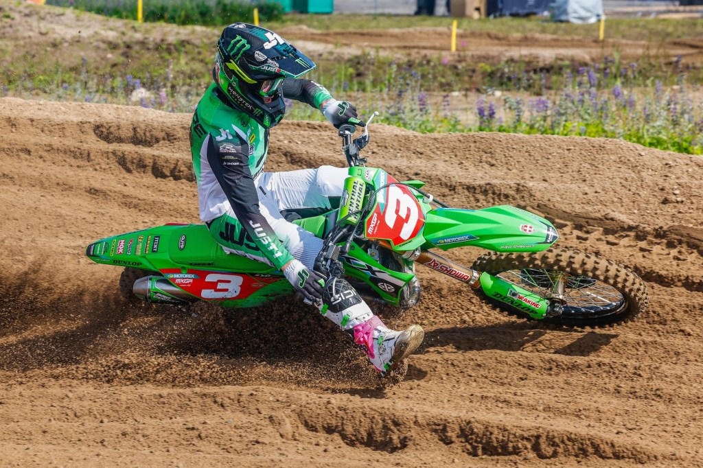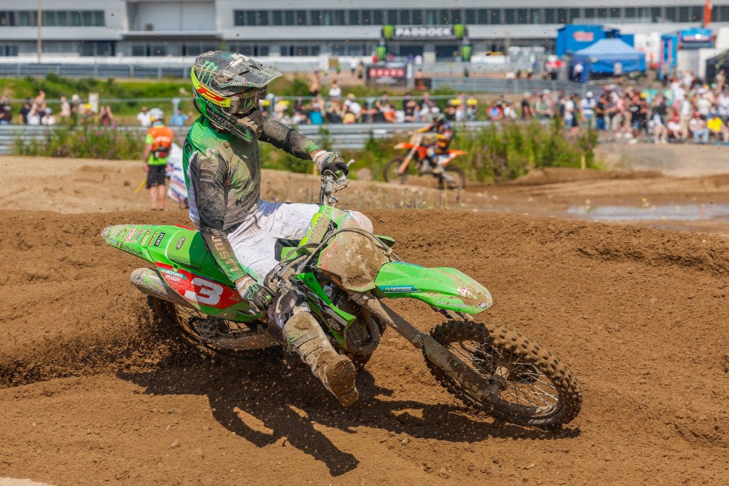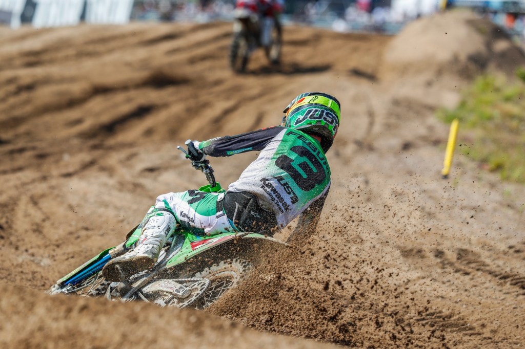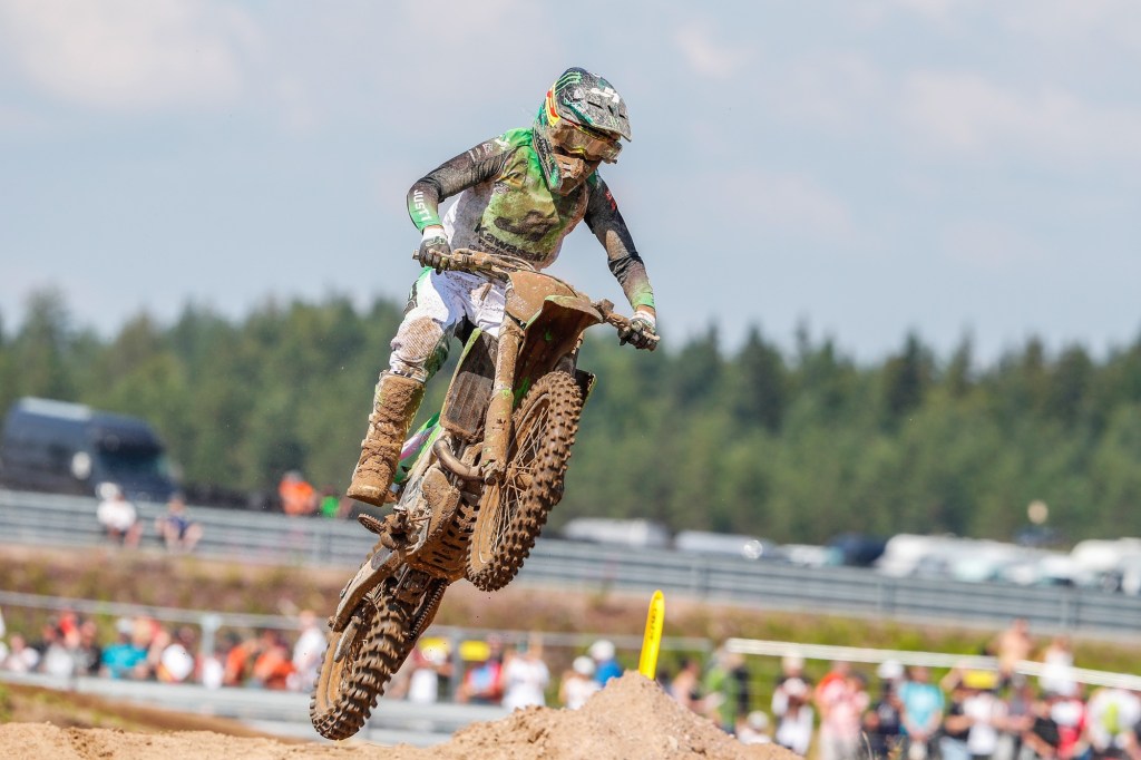 A good gate was negated on the run down to turn one in the first moto and the Frenchman found himself ninth after the initial sort-out. He was seventh within two laps and sixth next time round but the time gaps on the leaderboard had already developed on the rough sand-based track so further advances became more and more difficult. By lap eight he was pushing for fifth but met stiff resistance and eventually fell without losing a place. It took six laps to pull back those lost ten seconds and move into fifth with a stunning move down a bumpy straight with three laps remaining. He was closed down straight out of the gate in race two to emerge sixth from the first turn but was already fourth at the completion of the first lap. A decisive outside move at the start of lap three saw him advance into third but the leader was already sixteen seconds clear on a free track. A mistake by the front-runner on lap six tightened up the leaderboard battle and a slingshot move through the waves on lap nine saw the Frenchman pass for second. Personal fastest laps saw the Kawasaki rider edge even closer through the next couple of laps but the exertions of three tough rides through the pack were starting to take their toll with excessively high temperatures in the thin Scandinavian air and he eventually had to accept second in moto and overall for his twelfth podium from thirteen GPs. He retains the red plate of the series leader, fifteen points clear of his closest chaser.