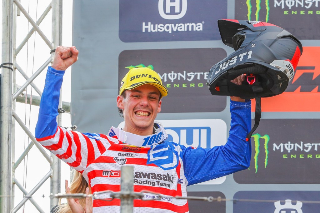 Kawasaki Racing Team MX2’s Mathis Valin clinched a career-first GP podium, and also the first for the Kawasaki KX250-SR, in the Czech round of the FIM World MX2 Motocross Championship at Loket.