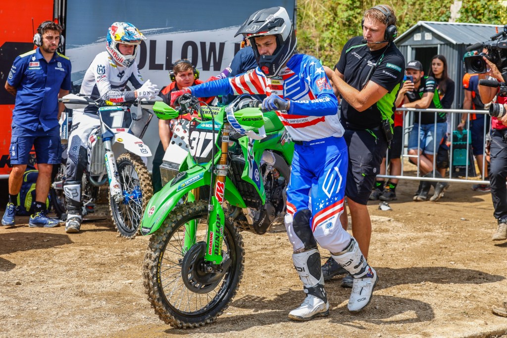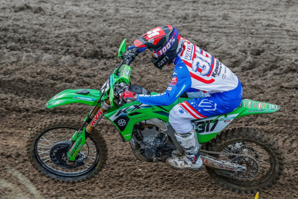 Brimming with confidence after victory in the Qualifying race on Saturday the French teenager once again got a superb jump out of the gate in the first GP moto and cleverly gave himself room entering the first turn to be narrowly edged for the holeshot. He quickly established himself in third in first-lap traffic and closed down second time-and-again as he maintained his race pace for the full thirty-five minutes but there was little movement on the leaderboard and he had to be satisfied with third at the chequered flag. There were slight drops of moisture in the air as the riders went to the line for race two but the rain held off and Valin streaked out of the gate to claim a first-ever holeshot award for the KX250-SR. The youngster sprinted two-second clear already on the first lap, stayed in front for nearly five laps and only surrendered second to the more experienced championship points-leader ten minutes from the end of the race. Two third-placed motos earnt third overall for a maiden GP podium in his rookie season. His fifty-point weekend haul has lifted him to eleventh in the series points-standings with the top-ten in sight.