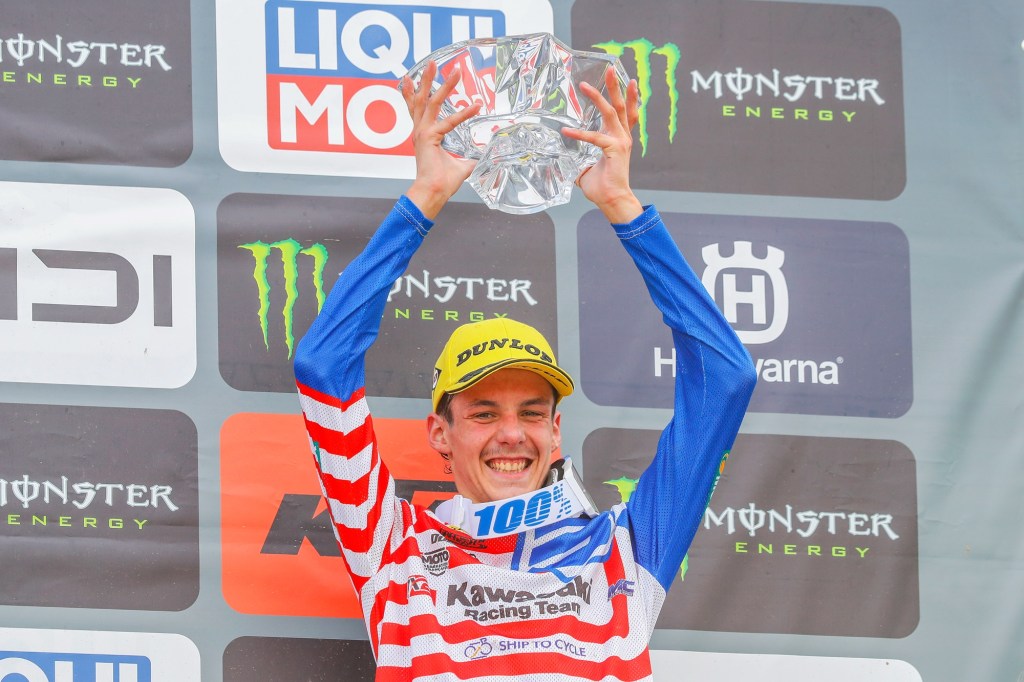 Mathis Valin: « What a great weekend! My first GP moto win yesterday in Qualifying and two thirds for third overall and my first podium today. I had two good starts again today, especially in the second race when I took the holeshot. It was my first experience to lead a GP moto so it was stressful, but I tried to concentrate on my technique and enjoy it. I was a little tired at the end but I hung in there for my first podium so now on to Lommel next weekend; I like the sand so we will prepare for that this week and look for more success. »