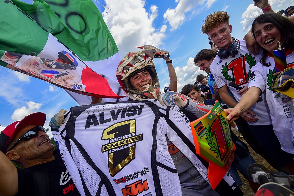 Alvisi in the end kept his nerve with the direct battle with Faure when it mattered most. His composure under pressure secured him the overall points lead and crowned him the 2025 EMX125 presented by FMF Racing European Champion.