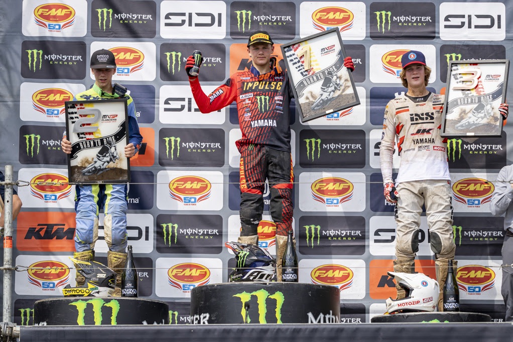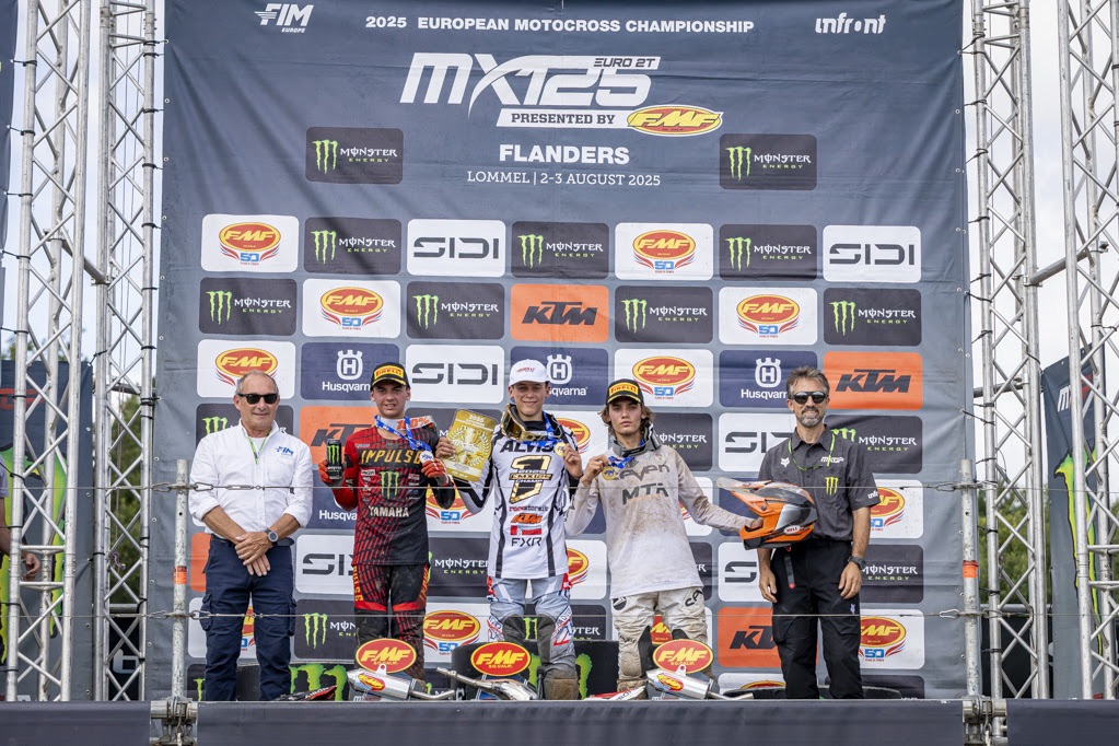 LOMMEL (Flanders, Belgium) 3rd August 2025 – The final round of the EMX125 Presented by FMF Racing season at Lommel delivered a nail-biting conclusion to an already intense championship battle between Racestore KTM Factory Juniors Nicolò Alvisi and Yamaha Europe