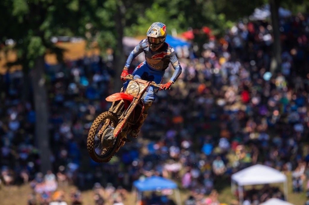 Back out front, Jett Lawrence took an uneventful moto win, his 16th of the season and 42nd of his career, by 2.9 seconds over Cooper, who fended off Hunter Lawrence for the Yamaha rider’s first moto podium since the sixth race of the season at RedBud. Hampshire followed in fourth, with Monster Energy Yamaha Star Racing’s Eli Tomac in fifth.