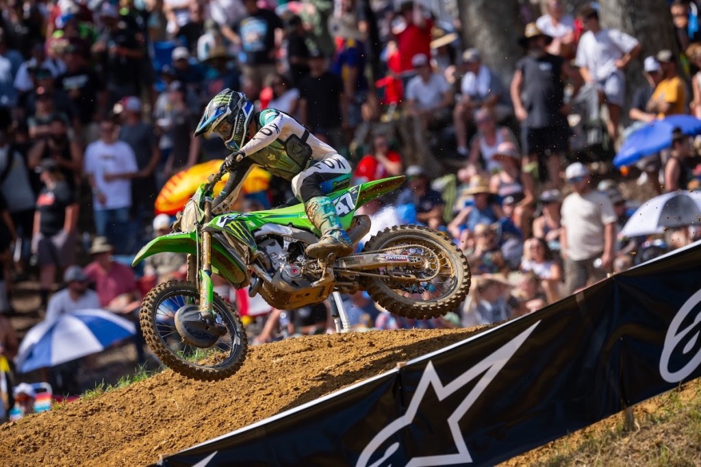 Hunter Lawrence ended the summer with his second moto win, 12.9 seconds ahead of Jett Lawrence. Hampshire wrapped up his rookie season with a third moto podium.