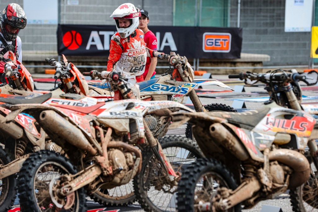 A rainy start greeted competitors for the opening day of racing at the 6DAYS® FIM Enduro of Nations in Bergamo, Italy. After a hot and sunny lead into the 6DAYS® Italia, rain clouds gathered as the six-hundred-and-sixty riders from the thirty-three nations prepared to roll off the start ramp early on Sunday morning.