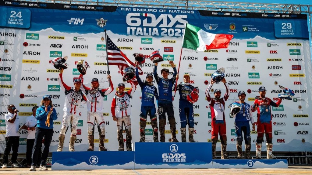 The 6DAYS® FIM Enduro of Nations saw Italy win this year’s World Trophy competition in Bergamo, Italy, finishing ahead of Sweden and France. Doubling the celebration, Italy also won the Junior World Trophy class over France and Australia. Securing their hat trick of MOTOREX Women’s World Trophy victories, the United States beat Australia and France to take the win.