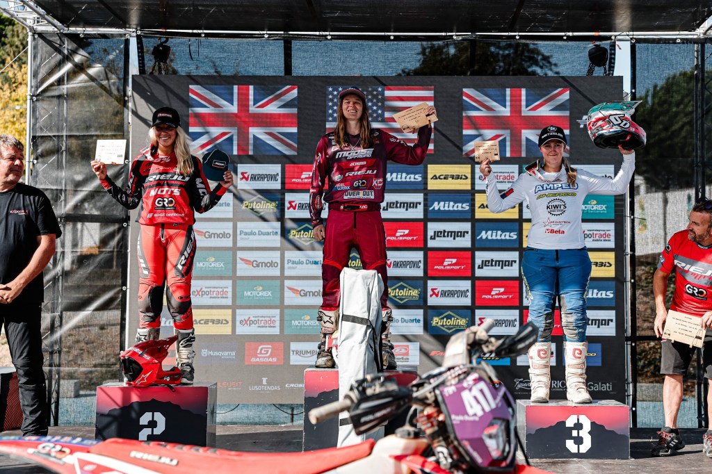 In the Expotrade FIM Junior Women’s Enduro World Cup, France’s Lorna Lafont (Sherco) raced to the top step of the podium for the second time this season. Electraction TM MOTO’s Elizabeth Tett took second, with Delun Davies (TM MOTO) third.