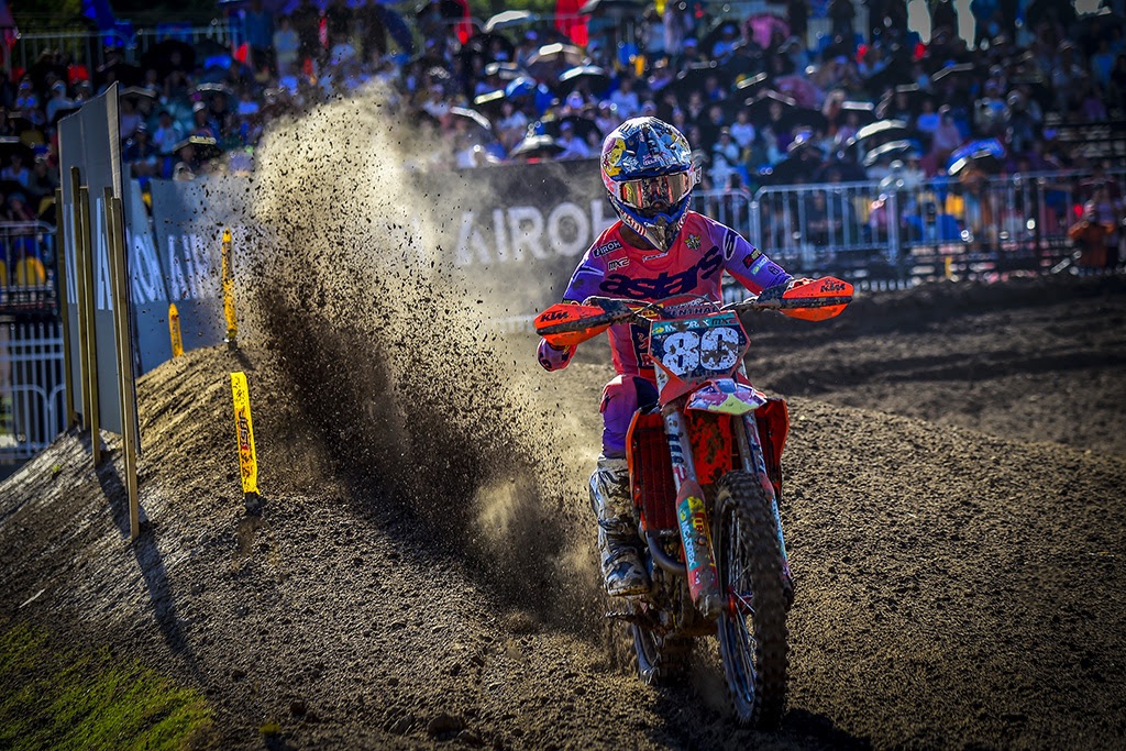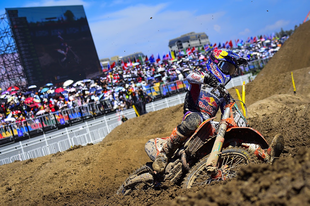 For Championship challenger Lucas Coenen, it was a tough start to what would be a very tough race, as he went through the first sector of the track in 12th place on hisRed Bull KTM Factory Racing machine! He quickly made a sequence of passes, however, to fight his way into eighth place, amazingly finding his title rival Febvre right in front of him after the Frenchman made a few errors to slip back into the Belgian’s crosshairs!