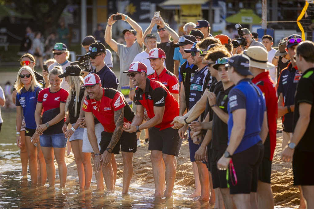 The event began with a traditional Saltwater Welcome to Country, where Trent Lee, an elder from the Larrakia people, the Indigenous Traditional Owners of the land and waters around Darwin, performed a Welcome to Country ceremony which included a blessing of the waterfront. Riders were given a cultural explanation and then got involved with the ceremony themselves by taking a symbolic barefoot step into the water, acknowledging the Larrakia people as the Traditional Custodians, the “Saltwater People” of Darwin.