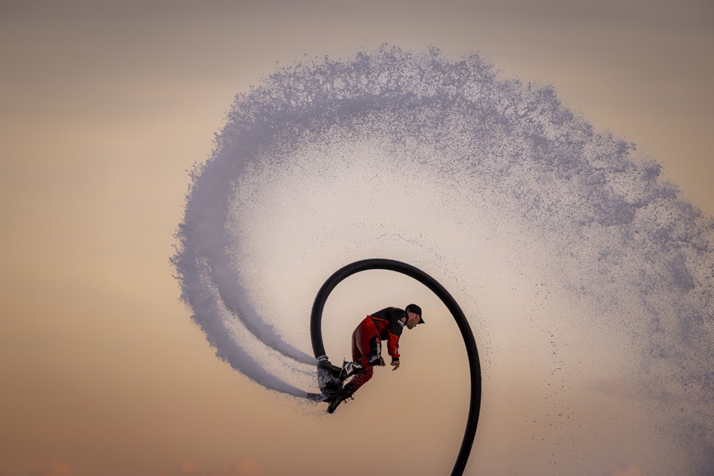 Towards the end of the signing session was a real treat, as MC “Rusty”, Greg Rust, introduced the Jet Pack Entertainment show, with their Hydroflight Sport athlete Jake Jones entertaining the crowd with an amazing aerial performance that included freestyle whips, back-flips, amazing dolphin lunges into the water itself, and the daring “Thread the Needle” manoeuvre that involved the leading Australian in the sport backflipping through a loop in the water hose that powered his own board! Free merchandise was given to the kids in the audience who got closest and therefore drenched by Jake during one of his amazing tricks!