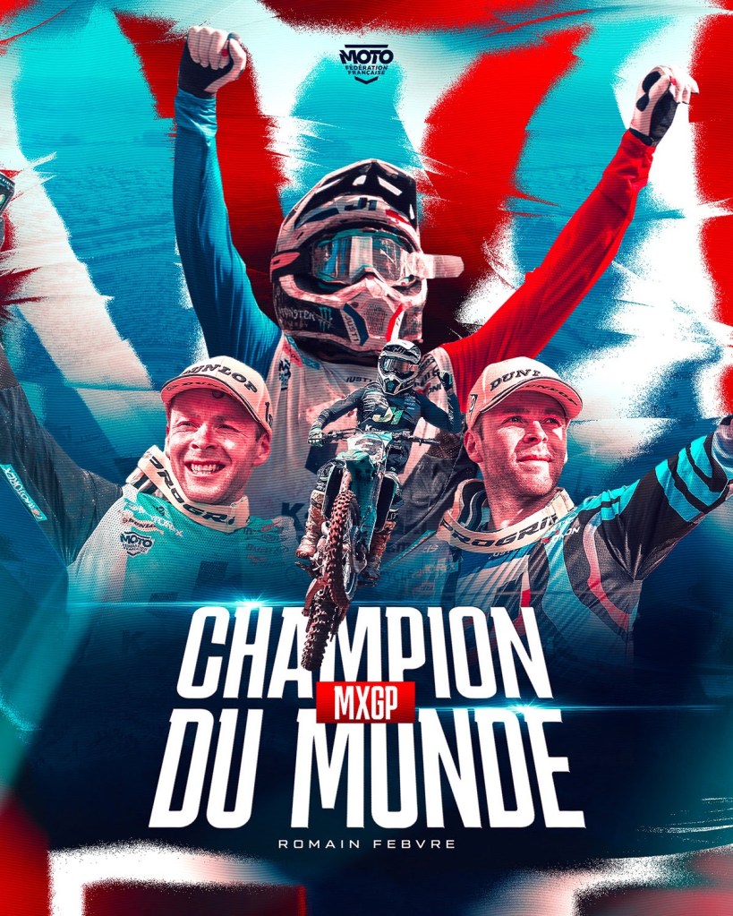 Romain Febvre goûte une nouvelle fois au titre suprême et se hisse au sommet du motocross mondial ! Ce dimanche 21 septembre, à l’occasion de la finale du Championnat du Monde FIM MXGP en Australie, il s’offre une deuxième couronne mondiale, s’inscrivant plus ardemment dans l’histoire de la discipline en devenant le premier français à remporter deux titres dans la catégorie reine.