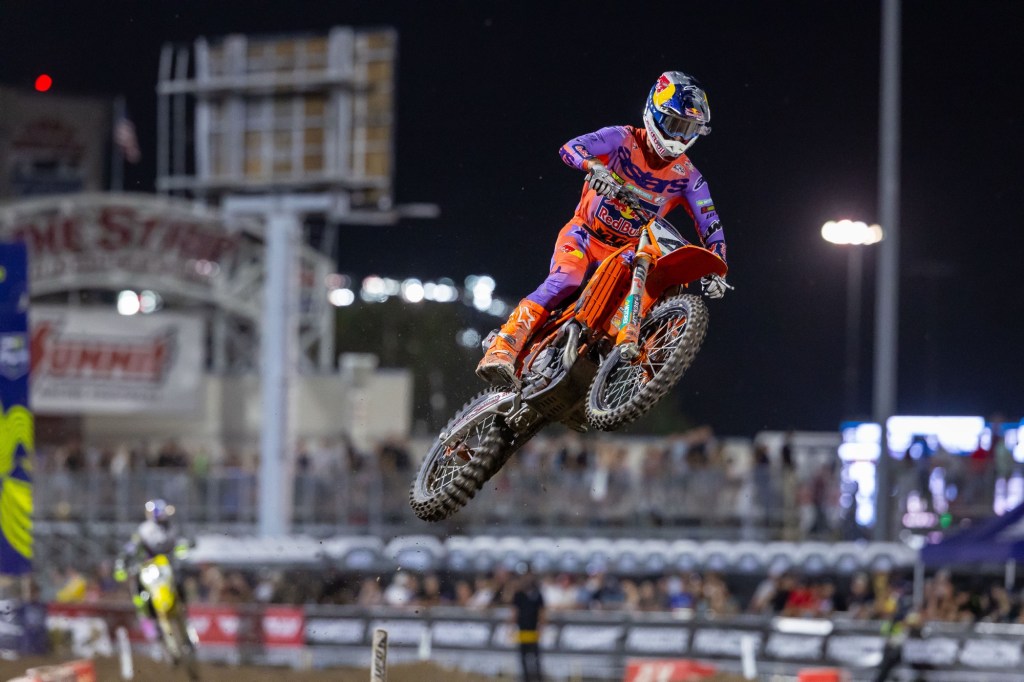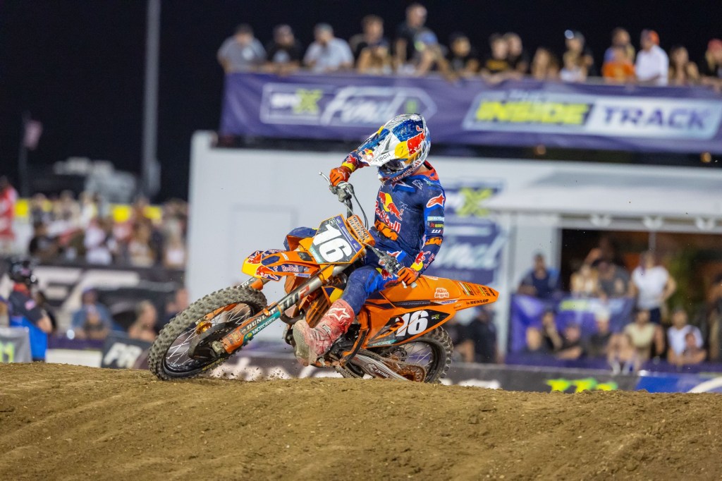 Among the VIPs in attendance, country music star Bailey Zimmerman joined the broadcast booth during qualifying and pre-race coverage where he said, “[Las Vegas] has always been that race, that is like, ‘the one.’ I’ve been saying it all day: a lot of people get to go to races, [but] you don’t get to go to the SuperMotocross World Championships in Las Vegas, Nevada, all the time. How cool is it to be out here and get to see this… I literally can’t believe I’m here right now. This is insane!”