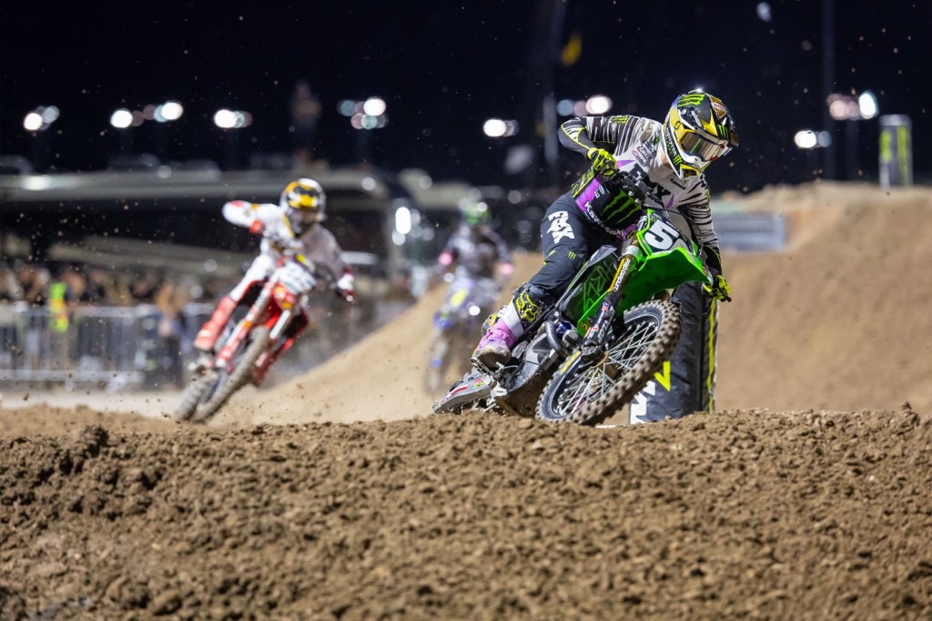 The 250SMX Class delivered peak thrills for any form of racing, and just the type of scenario that the SMX World Championship postseason structure was designed to create. The first moto delivered excellent racing, but almost nothing in motorsports could match the excitement delivered in the second 250SMX Class moto.
