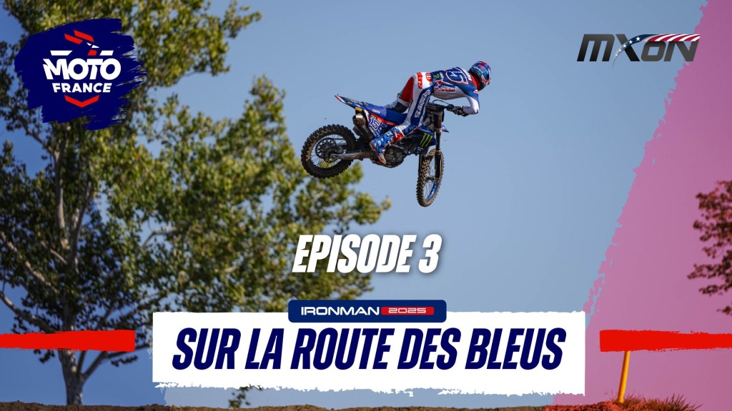 L’épisode 3 de la web-série « Sur la Route des Bleus » retrace la première journée de compétition sur le circuit d’Ironman, aux États-Unis. Sébastien Poirier, Président de la Fédération Française de Motocyclisme, a tenu à partager quelques instants avec les Bleus en vue de ce week-end animé. Nos pilotes Romain Febvre (MXGP), Mathis Valin (MX2) et Maxime Renaux (OPEN) ont pu poser leur roues sur la terre américaine, accompagnés de leurs entraîneurs, pour une prise de repères décisive. Après les essais libres du matin, les manches qualificatives de l’après-midi ont permis à l’Équipe de France de se positionner sixième pour l’entrée en grille. Les bases sont posées, la tension monte : aujourd’hui, place aux courses.