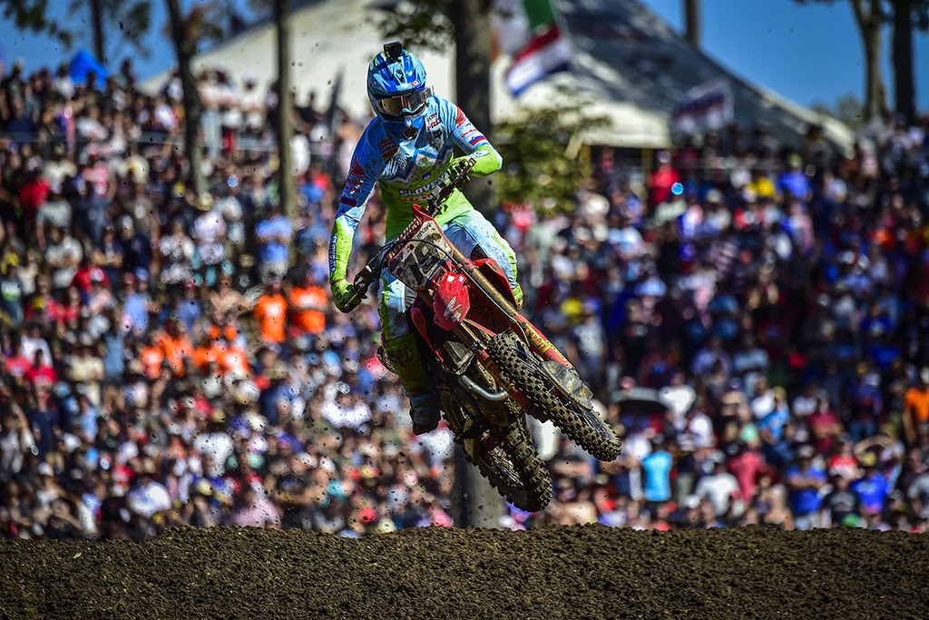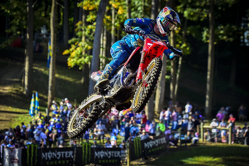 In fact, “Captain America” nearly caught Gajser for third in the final laps, finishing a frustrated fourth less than two seconds behind the Slovenian! His teammate Justin Cooper on the 250cc Star Racing Yamaha got up to tenth after a last-lap collision with Sacha Coenen, which damaged the Belgian’s bike to the point where he couldn’t finish the final lap, cruelly demoting him to 20th place!