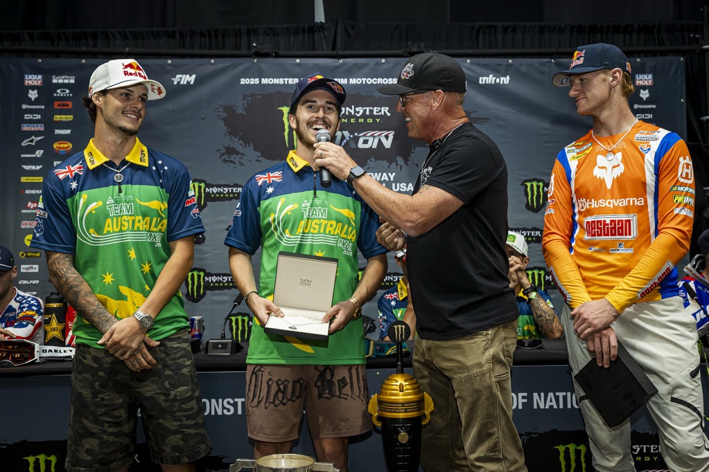 Jett Lawrence – Team Australia: “The first moto was tough, I was on the ground way too much, more than I have been all year, but we cleaned it up in the last one. It feels amazing. I’m so thankful for everyone behind us, for the incredible support from Australia and the fans here in America. My boys, Kyle [Webster] and Jett [Lawrence] were unreal all weekend. I’m beyond stoked, so proud, and just grateful to share this moment with everyone.”