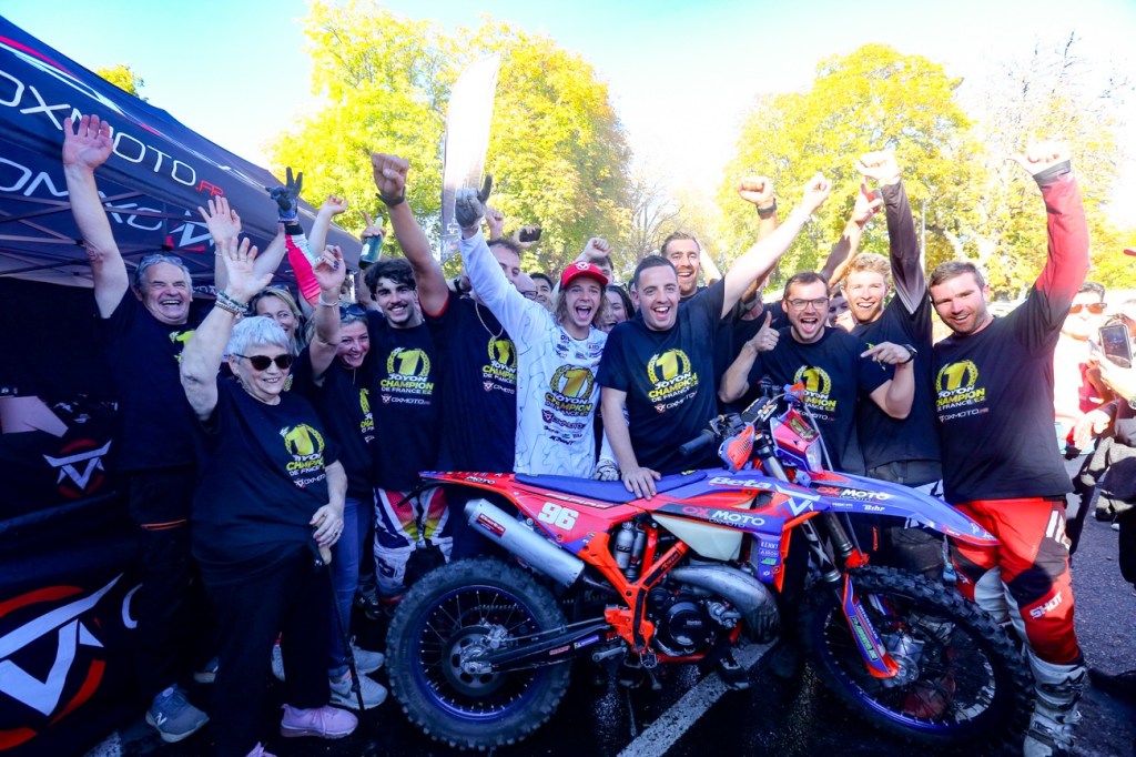 Le scénario de la catégorie E2 nous aura fait vibrer jusqu’au bout. Et au final ce soir, c’est une explosion de joie qui s’est entendue chez OxMoto : Léo Joyon s’offre sa première couronne Elite au terme d’un finish renversant. À deux spéciales de la fin, l’avantage était encore pour Luc Fargier (Dafy Enduro Team), mais Joyon a trouvé les ressources pour inverser la tendance sur les derniers chronos et s’imposer.