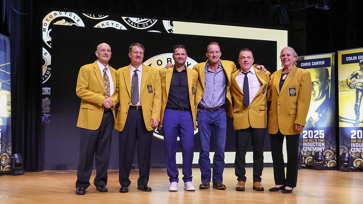 The AMA Motorcycle Hall of Fame Class of 2025 includes Dana Bell, Chris Carter, Colin Edwards, Joe Kopp, Chad Reed and Ryan Young, all of whom completed the tradition of receiving their Hall of Fame rings and iconic gold jackets during the ceremony.